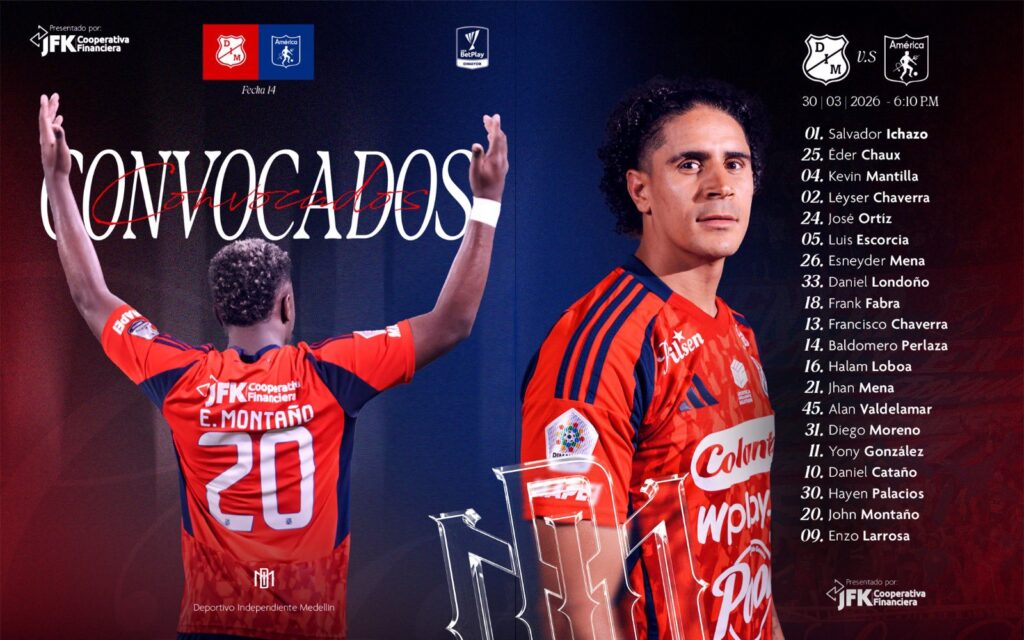 Deportivo Independiente Medellín ya dio a conocer su convocatoria para el partido contra América de Cali, el cual es por la fecha 14 de la Liga BetPlay.
